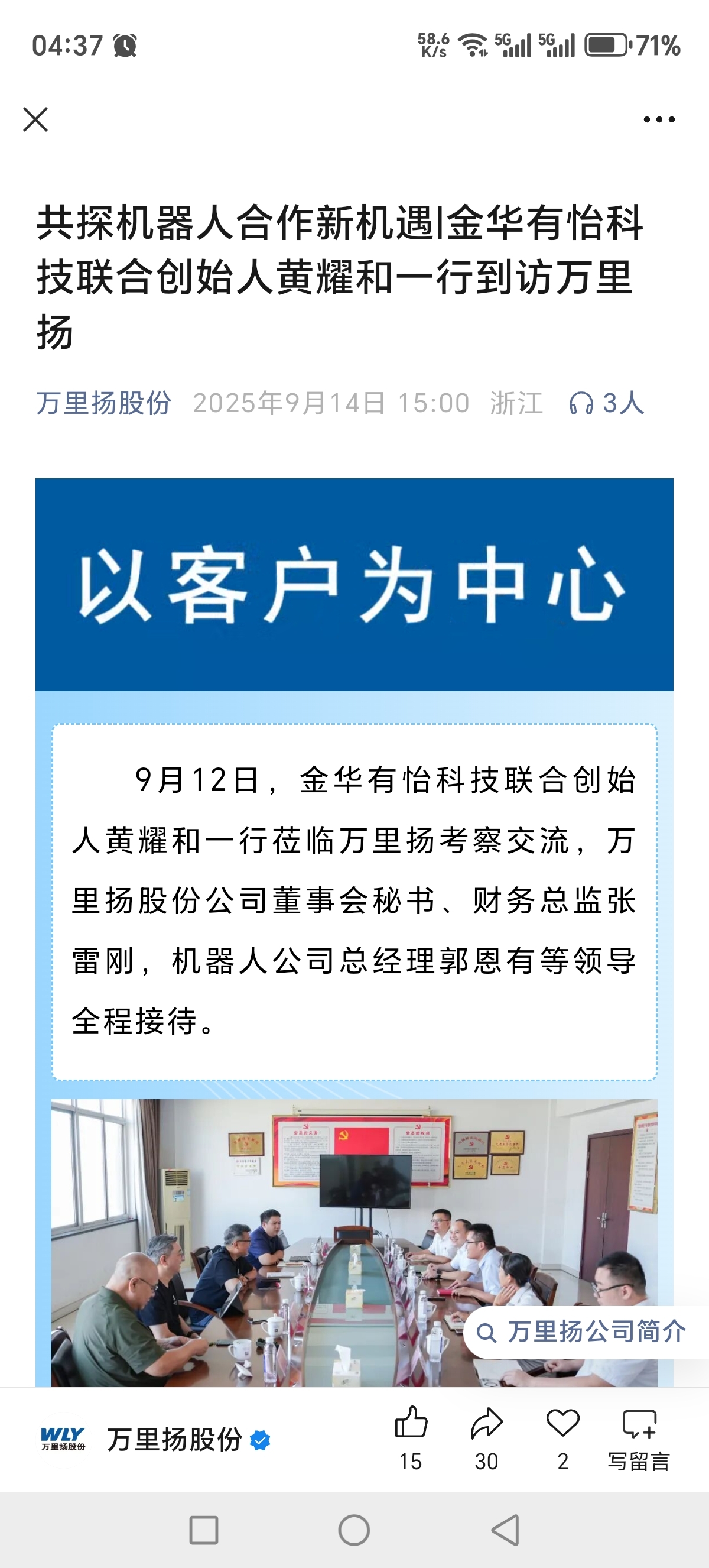 $万里扬(SZ002434)$ 公司的所谓保密机器人客户已经石锤了,跟宇树有个鸡毛关系,宇树看不上这货。有怡科技的杂毛小公司,才是万里扬口中的所谓客户,万里扬金华建厂,有怡科技准备零件金华本土化,一切都对上了