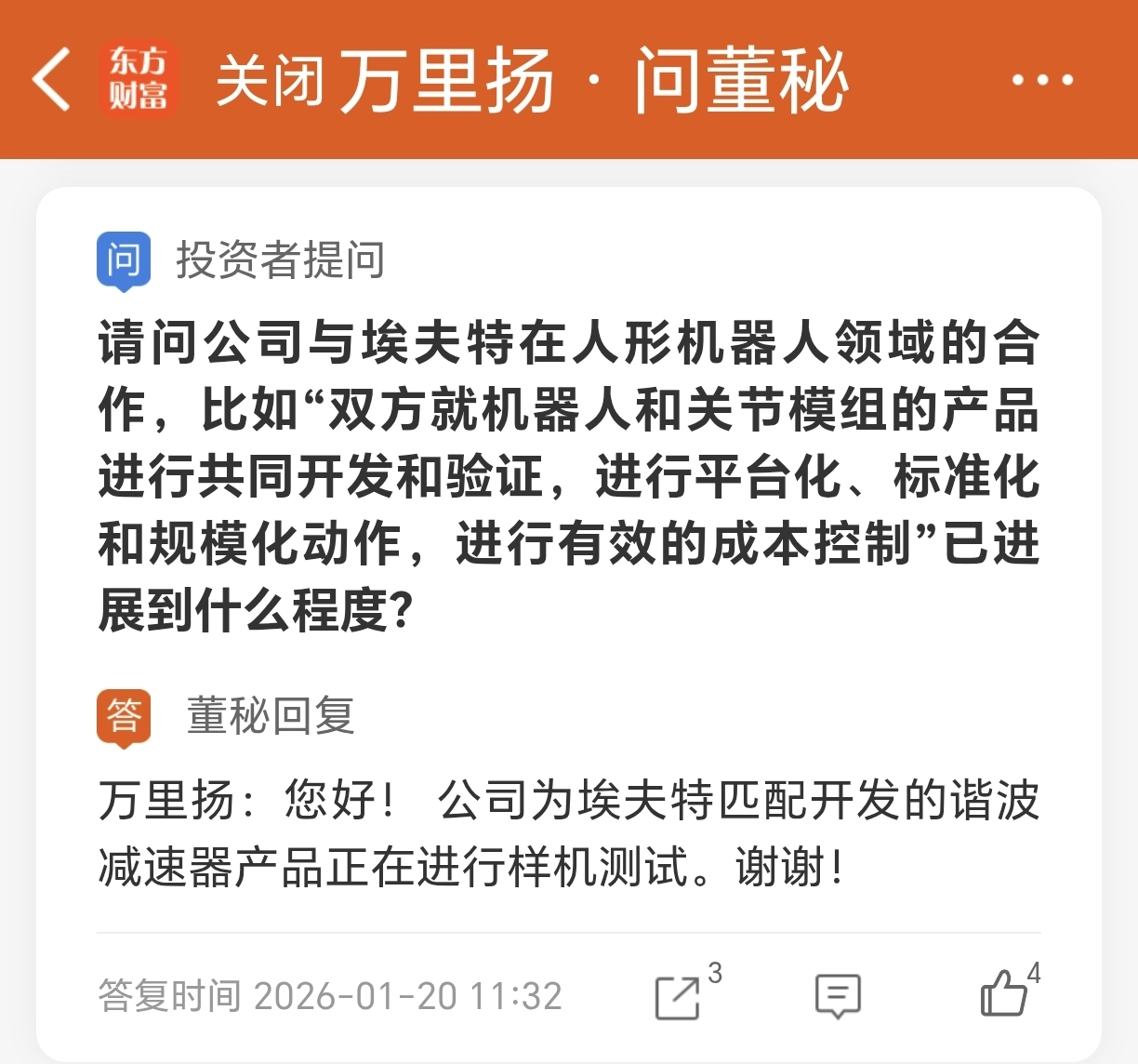 但对于是否向人形机器人领域拓展合作的问题却坚不回答、避而绕之。