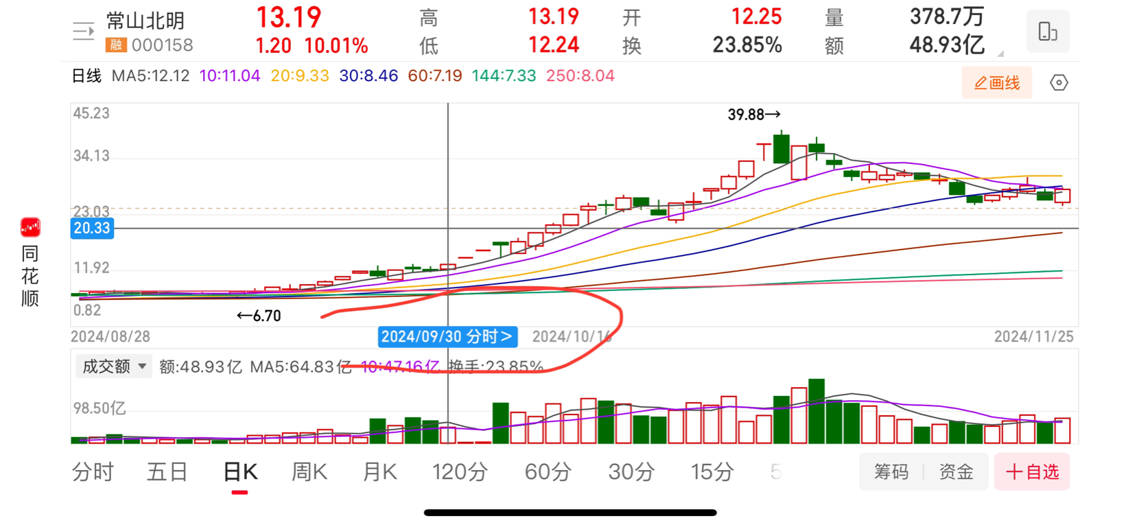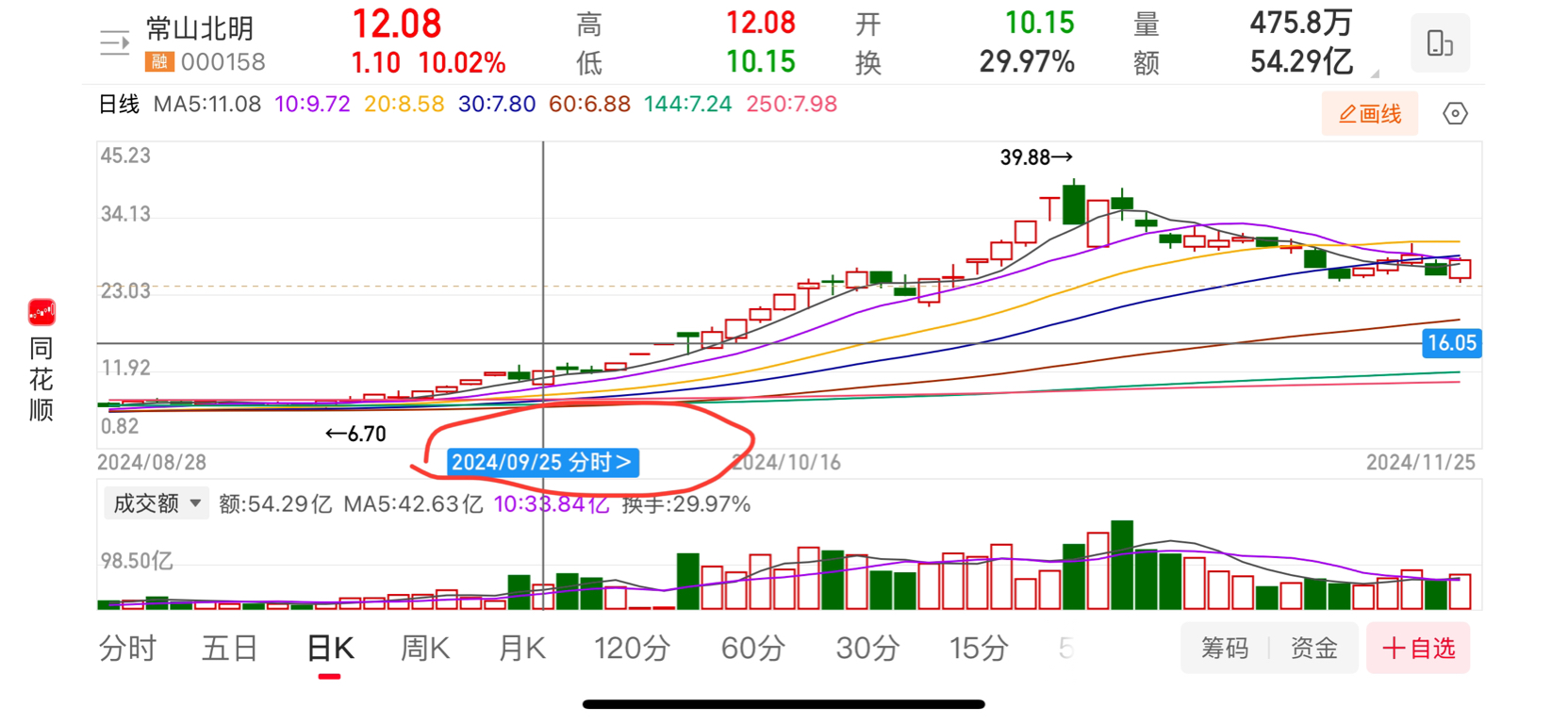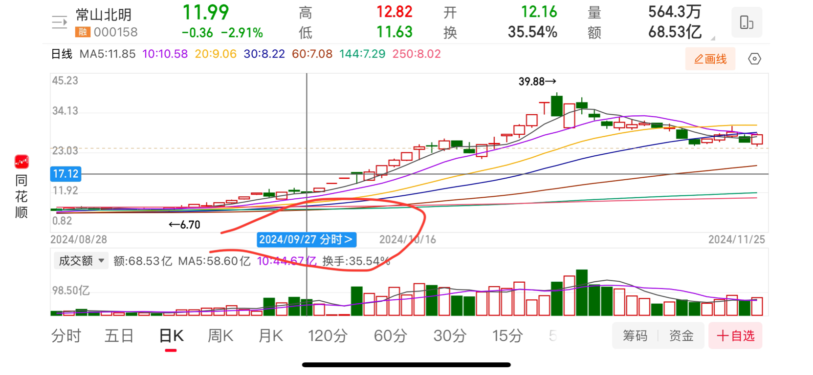 参考常山北明2024年9月25日涨停,以及9月26日,27日两天放量一个假阴线,