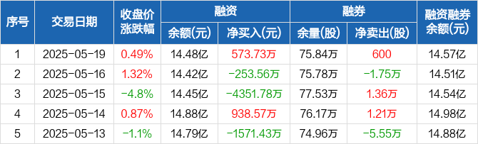 兴森科技:融资净买入573.73万元,融资余额14.48亿元(05-19)