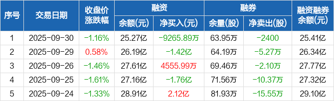 兴森科技:融资净偿还9265.89万元,融资余额25.27亿元(09-30)