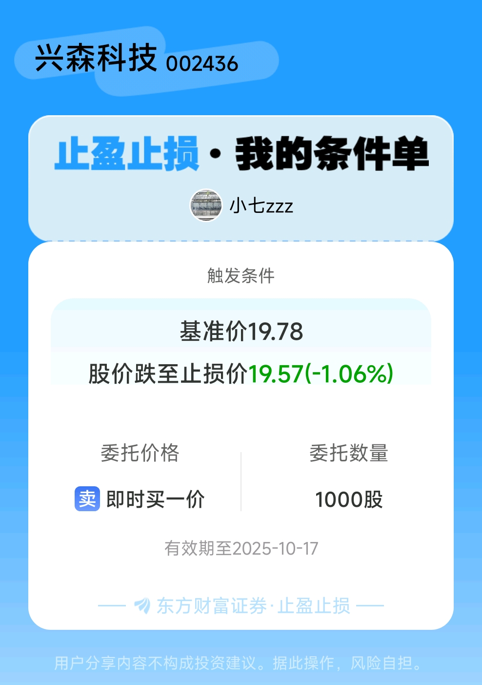 #条件单交流# #止盈止损晒单# 一位股神设置了一个止盈止损条件单,接下来就是见证奇迹的时刻~$兴森科技(SZ002436)$