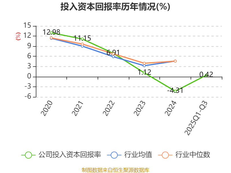 盈利能力方面, 2025年前三季度公司加权平均净资产收益率为2.55%,同比上升3.16个百分点。公司2025年前三季度投入资本回报率为0.42%,较上年同期上升2.9个百分点。