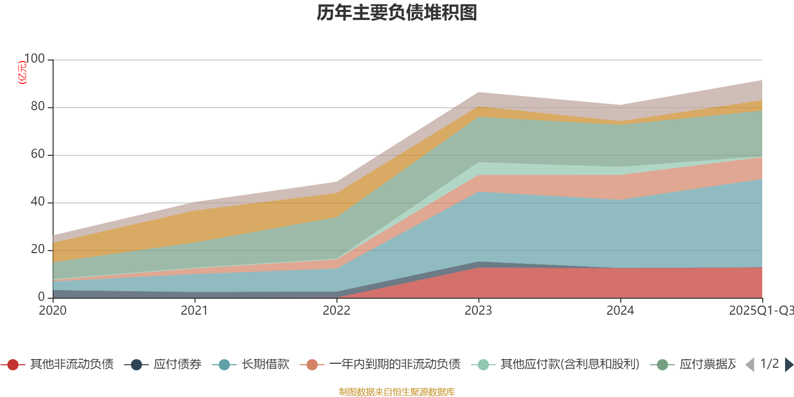 负债重大变化方面,截至2025年三季度末,公司长期借款较上年末增加29.4%,占公司总资产比重上升3.79个百分点;其他应付款(含利息和股利)较上年末减少90.2%,占公司总资产比重下降2.26个百分点;短期借款较上年末增加187.81%,占公司总资产比重上升1.81个百分点;一年内到期的非流动负债较上年末减少12.17%,占公司总资产比重下降1.52个百分点。