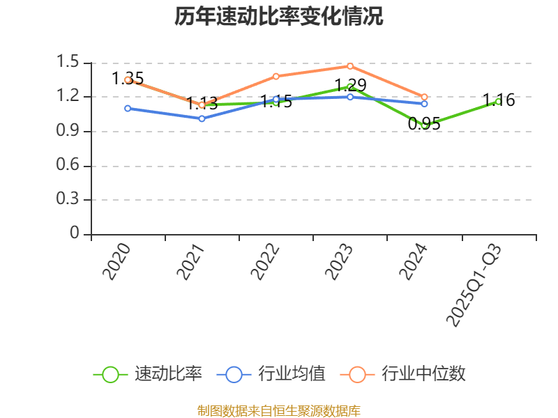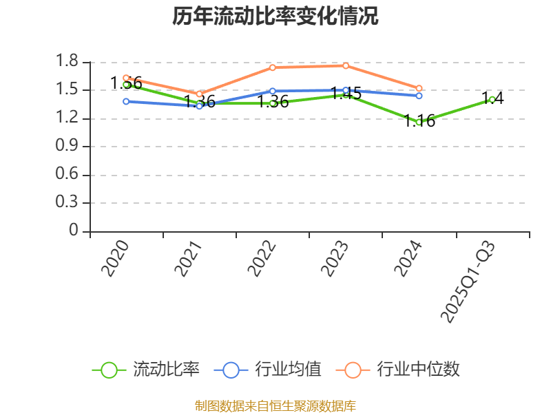 2025年前三季度,公司流动比率为1.4,速动比率为1.16。