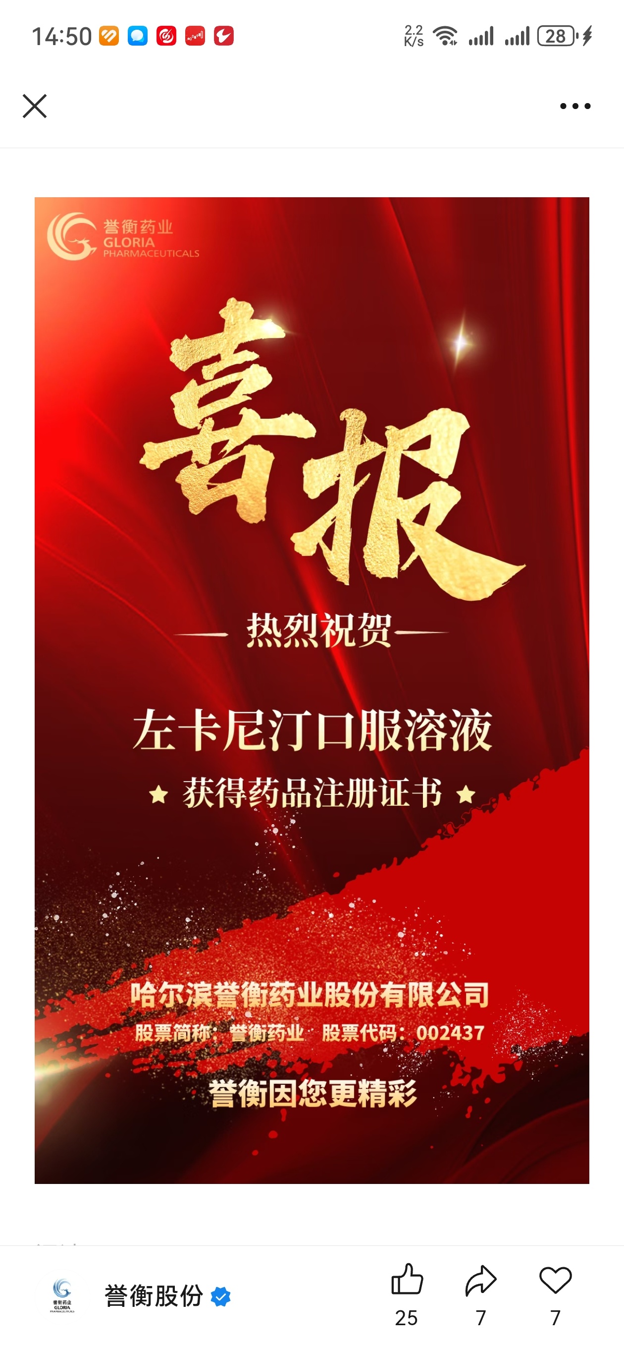 $誉衡药业(SZ002437)$ 好事将近,静候国礼
