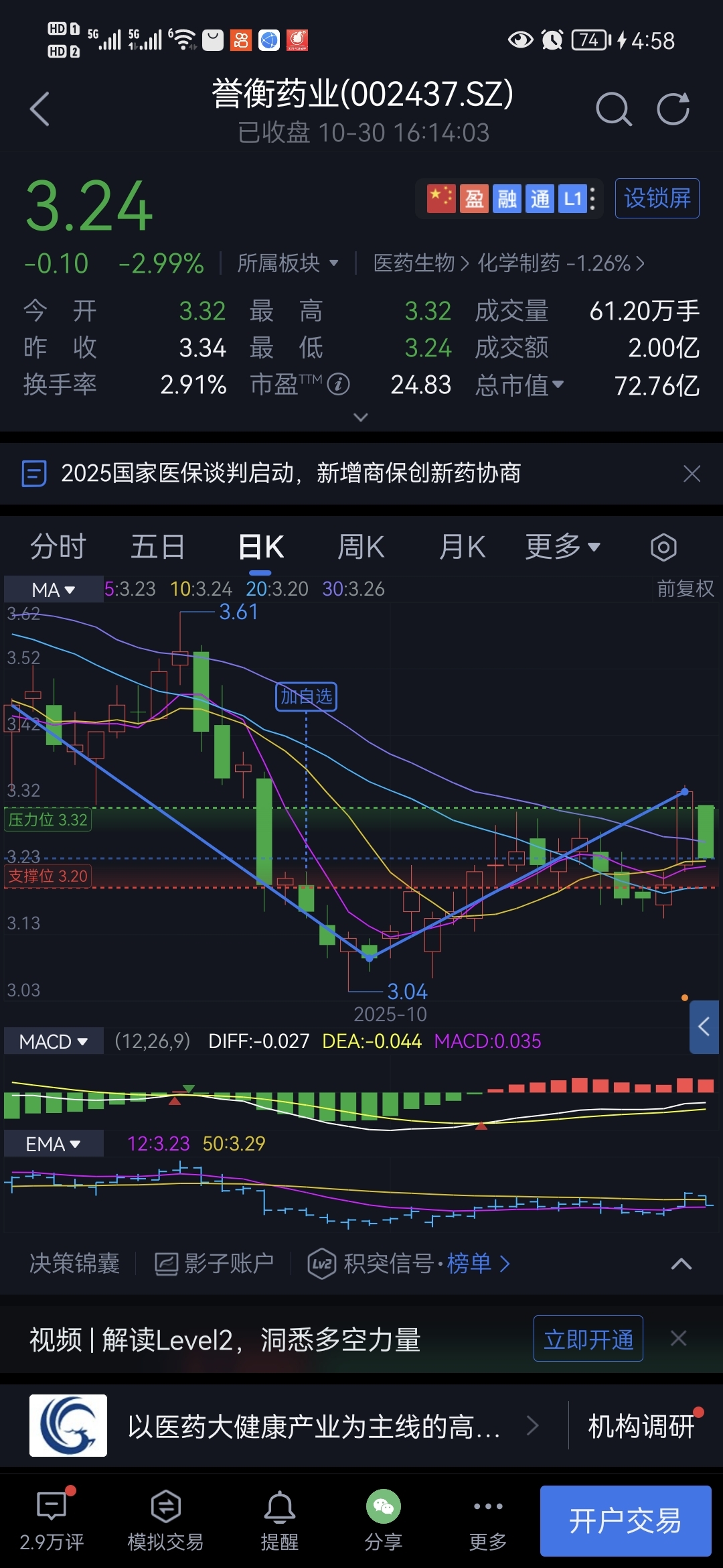 $誉衡药业(SZ002437)$ 压力位在那里,洗盘子
