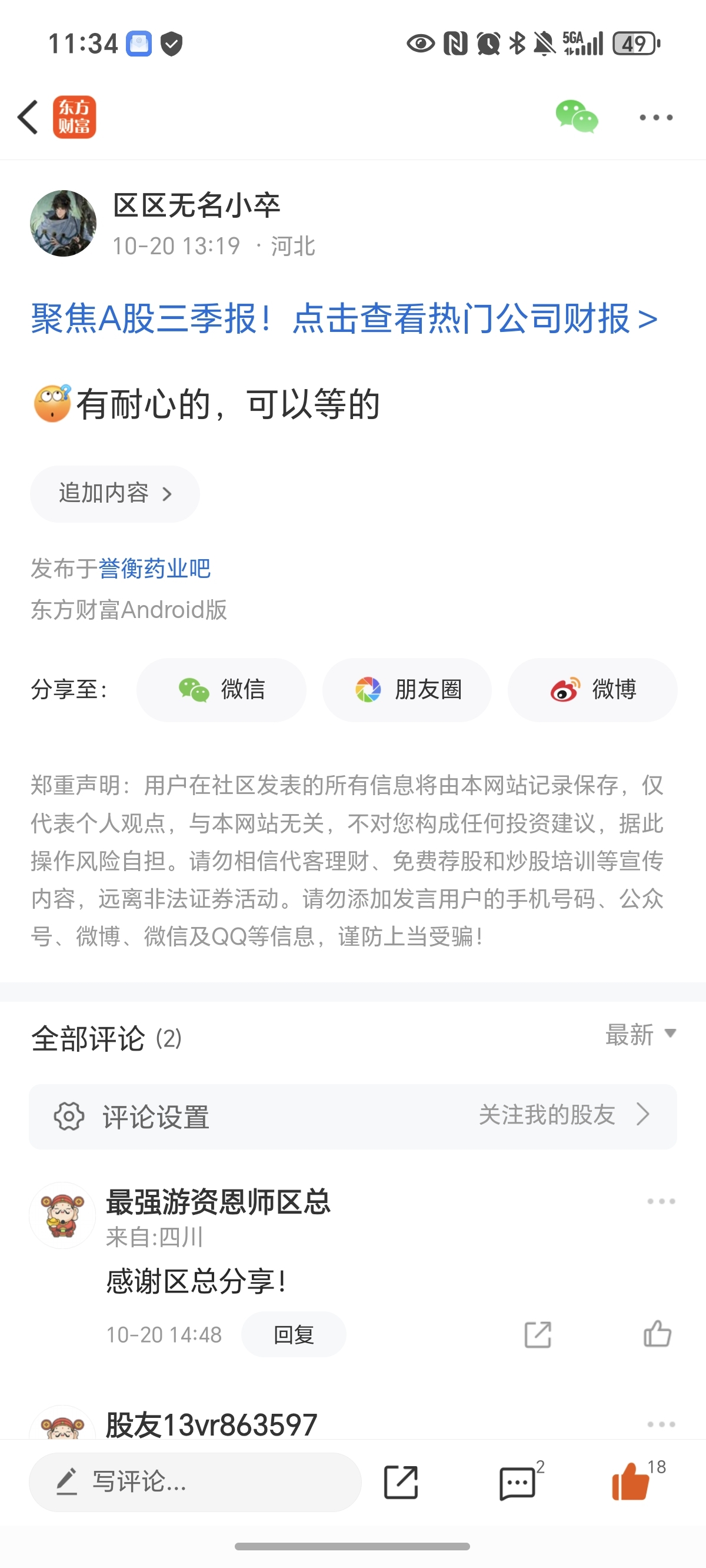 温馨提示: 1.根据《证券法》规定,禁止编造、传播虚假信息或者误导性信息,扰乱证券市场;2.用户在本社区发表的所有资料、言论等仅代表个人观点,与本网站立场无关,不对您构成任何投资建议。用户应基于自己的独立判断,自行决定证券投资并承担相应风险。《东方财富社区管理规定》