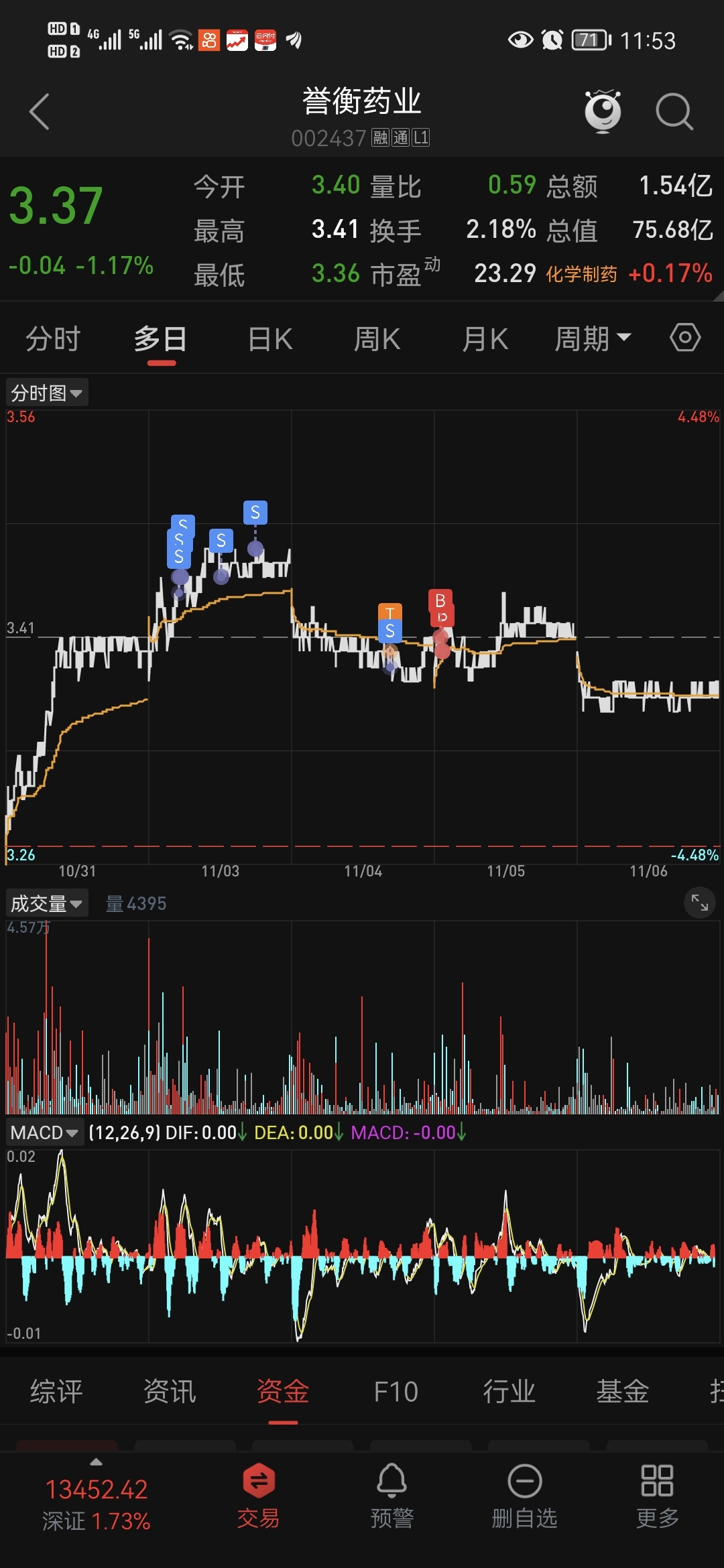 $誉衡药业(SZ002437)$ 在跌一毛,明天要是到3.27我就要止损了全仓出,又白耍了几天