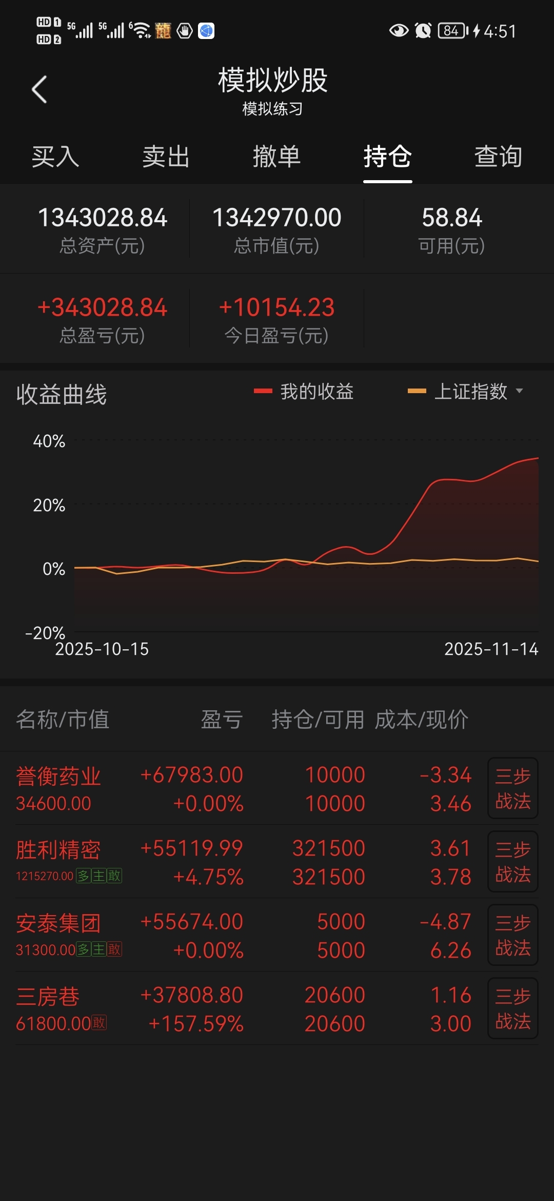 我的模拟三步战法还没有加仓,不急,满仓活跃一致股上