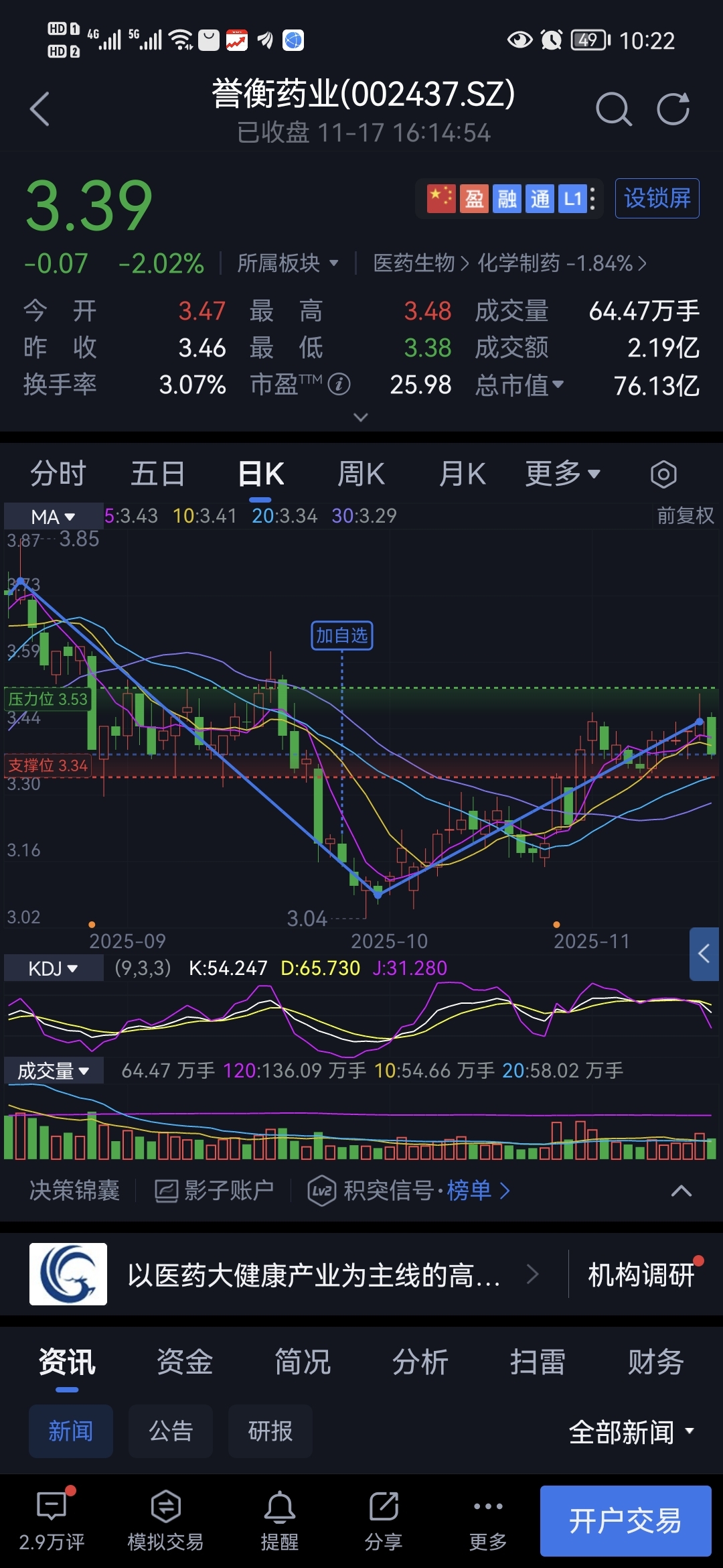$誉衡药业(SZ002437)$ 明天跟你们压到3.25在说!留下买路钱