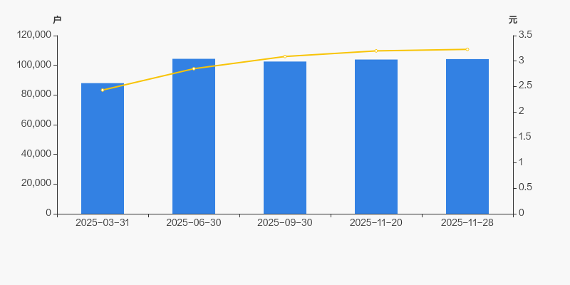 2025年3月31日至今,公司股东户数显著增长,区间涨幅为18.42%。2025年3月31日至2025年11月28日区间股价上涨32.92%。