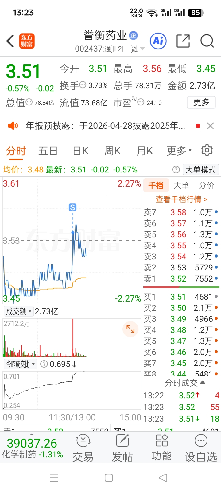 $誉衡药业(SZ002437)$ 我已出仓,感觉良好!