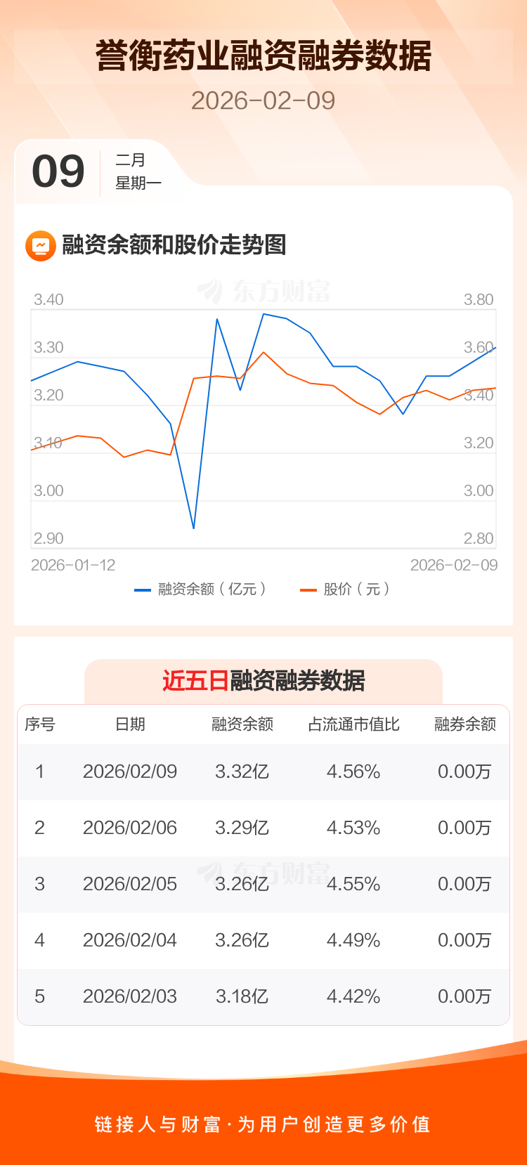 交易所最新数据显示,誉衡药业于2026年2月9日获融资买入2182.05万元,融资偿还1852.44万元,当日融资净买入329.61万元。目前,该股融资余额3.32亿,占流通市值比例为4.56%。