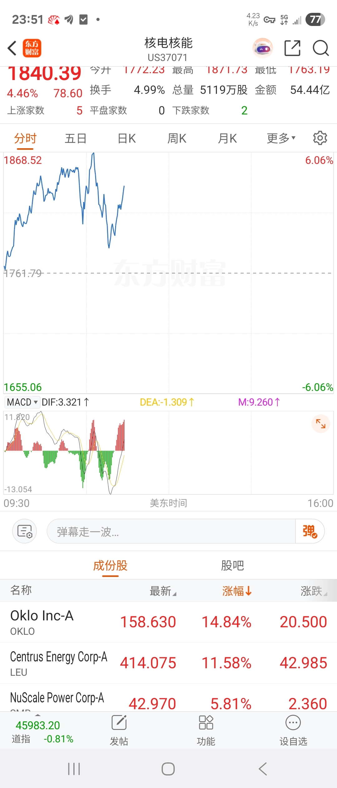 $江苏神通(SZ002438)$ 今晚美股大跌,只有核电大涨,大A里面江苏神棍又是跌