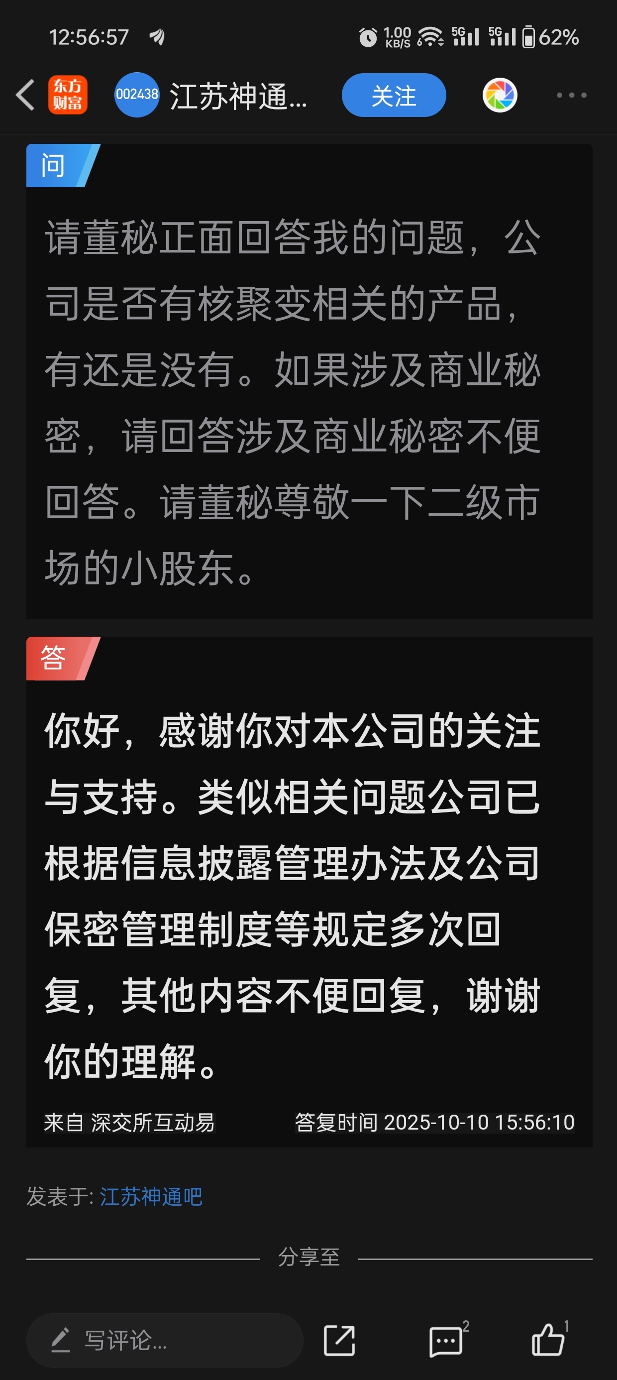 这个董秘是真服了,几年前问什么答什么,现在问他核聚变他保密,问他玲珑一号他拐弯抹