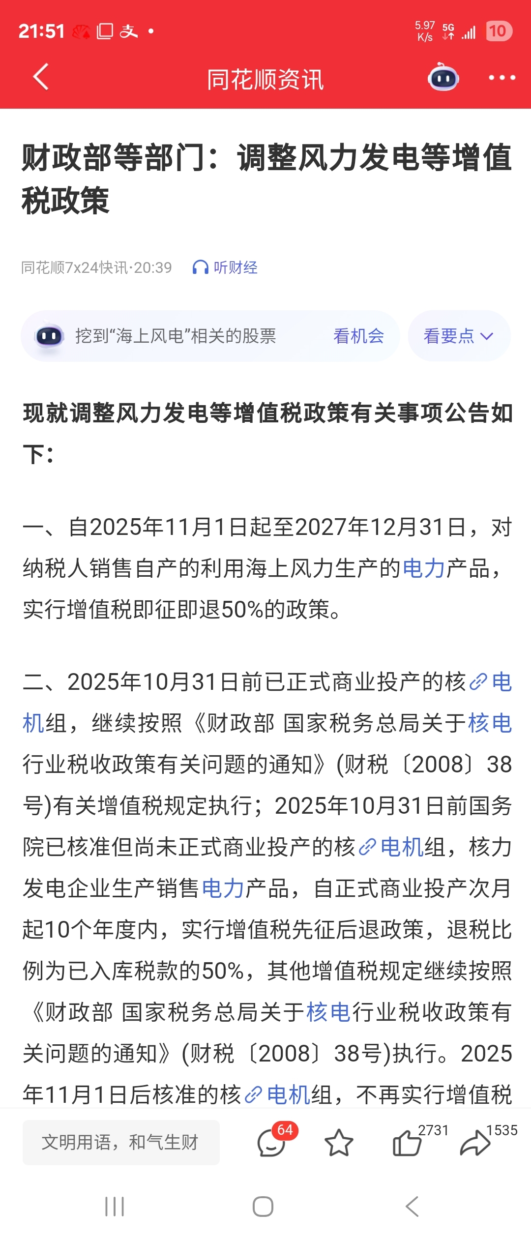 风电核电利好来了