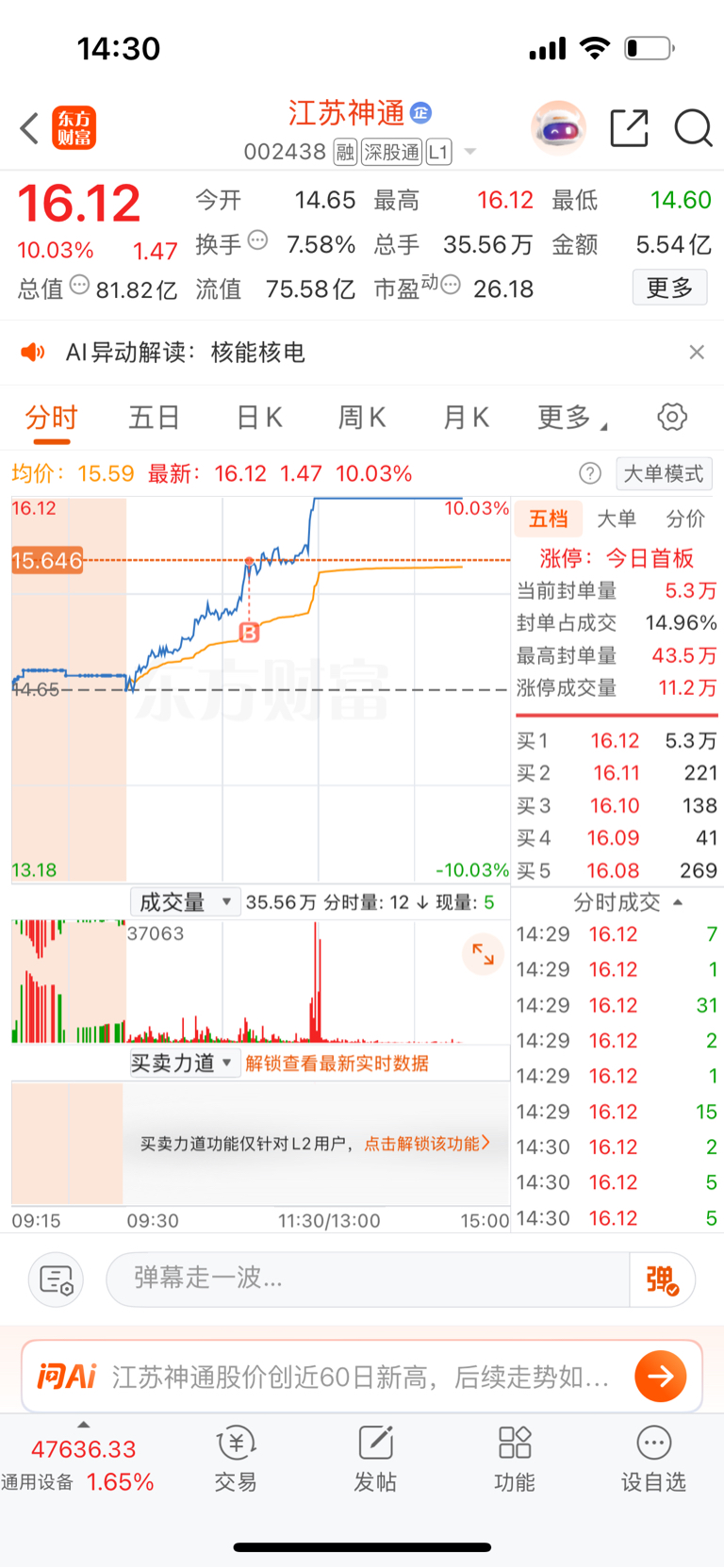 $江苏神通(SZ002438)$ 主力想封板几万手也能封的住,主力想跑100万手也封不住早上四川九洲120万封单炸板现在都没戏