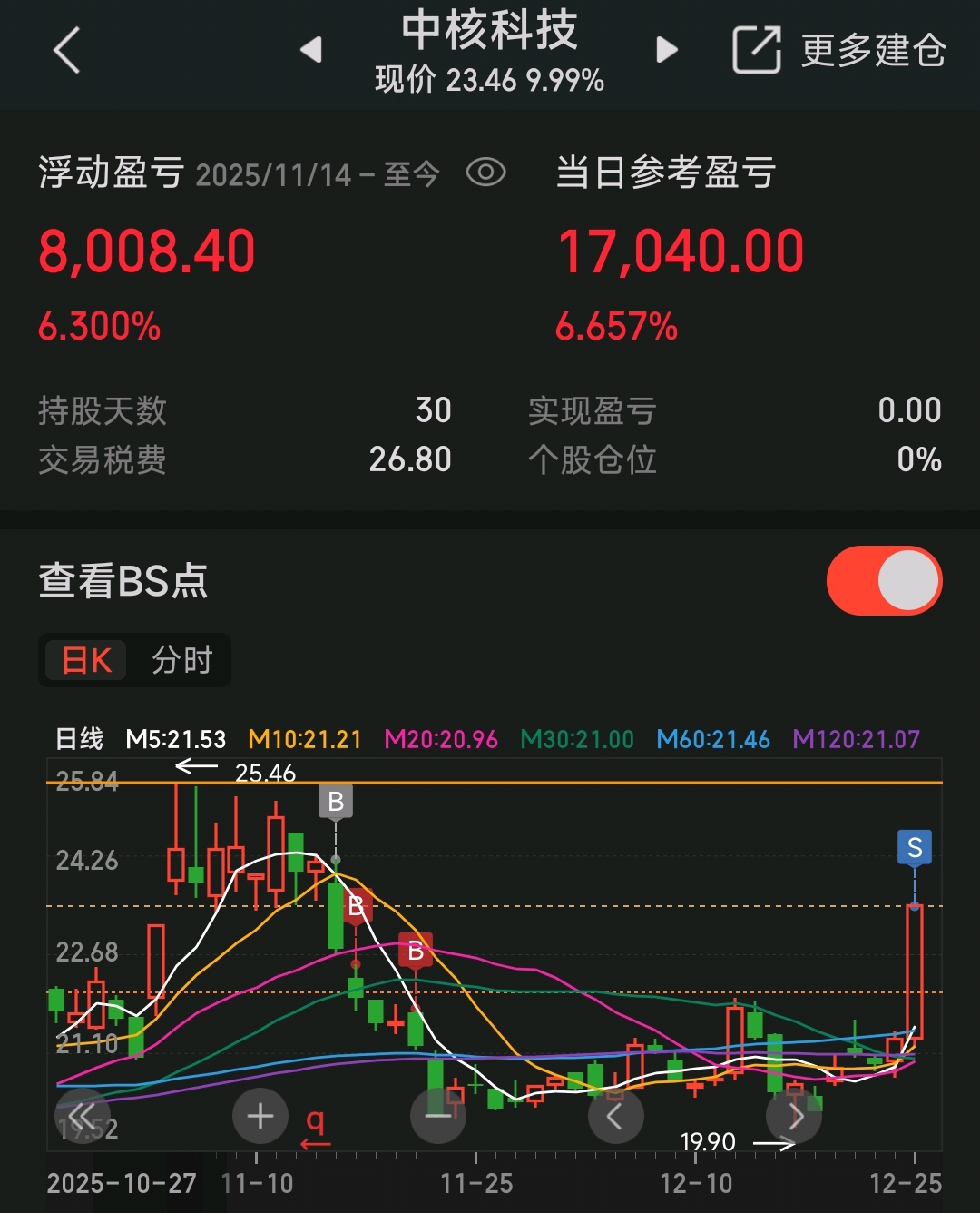 20251225继续守望江苏神通。中核科技出一笔,获利8000。