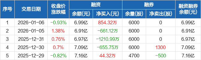 江苏神通:融资净买入854.32万元,融资余额6.99亿元(01-06)