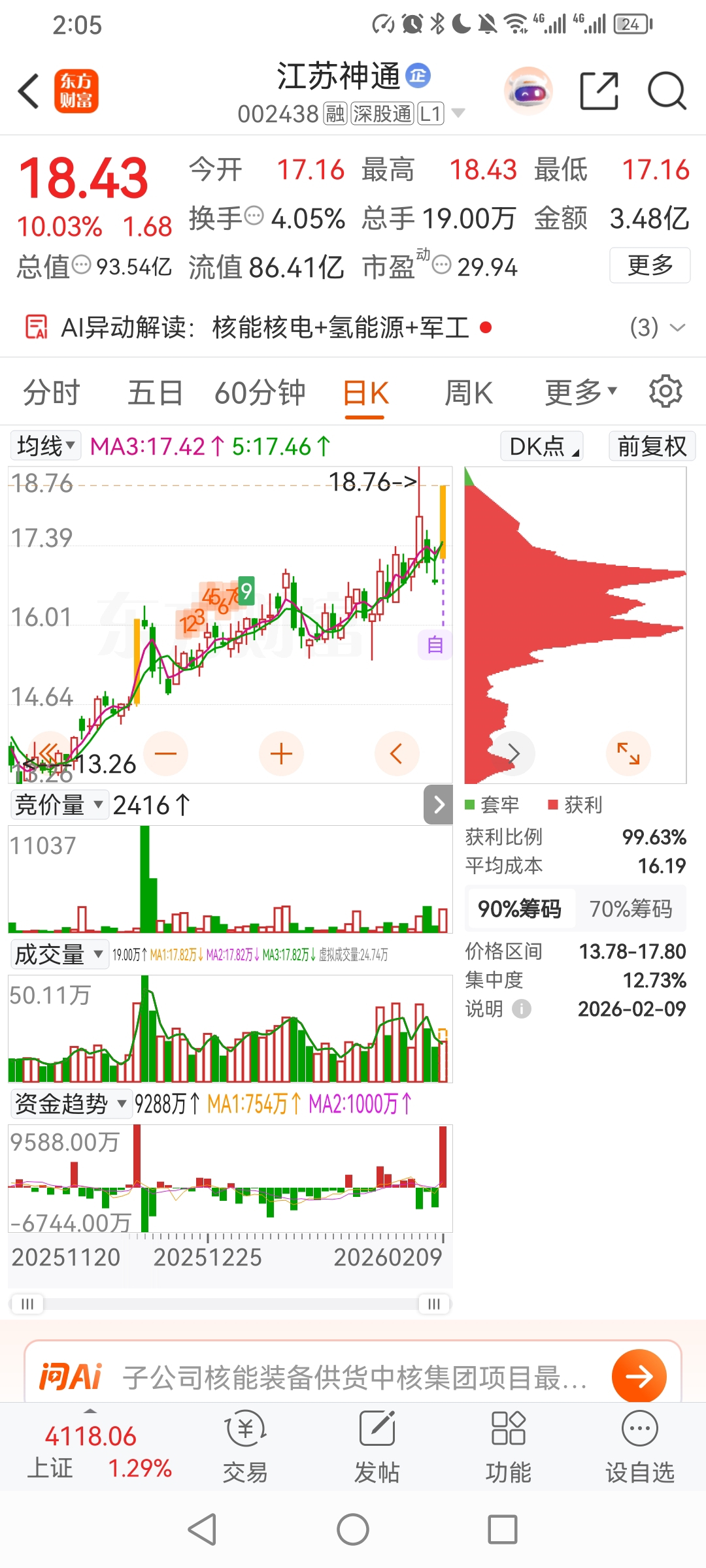 军哥江苏神通盯盘理解题材龙头买进仓位。一个概念龙头,加仓1成。
