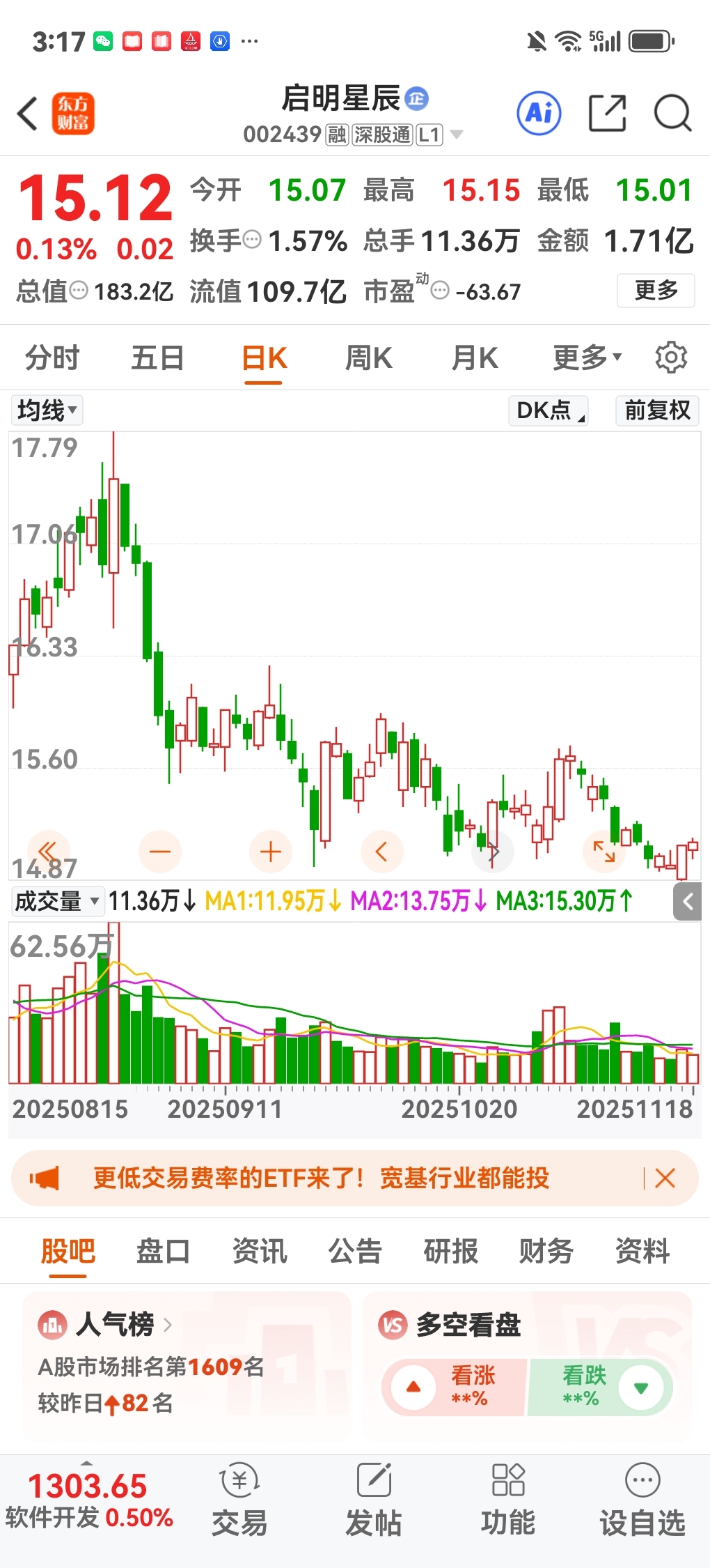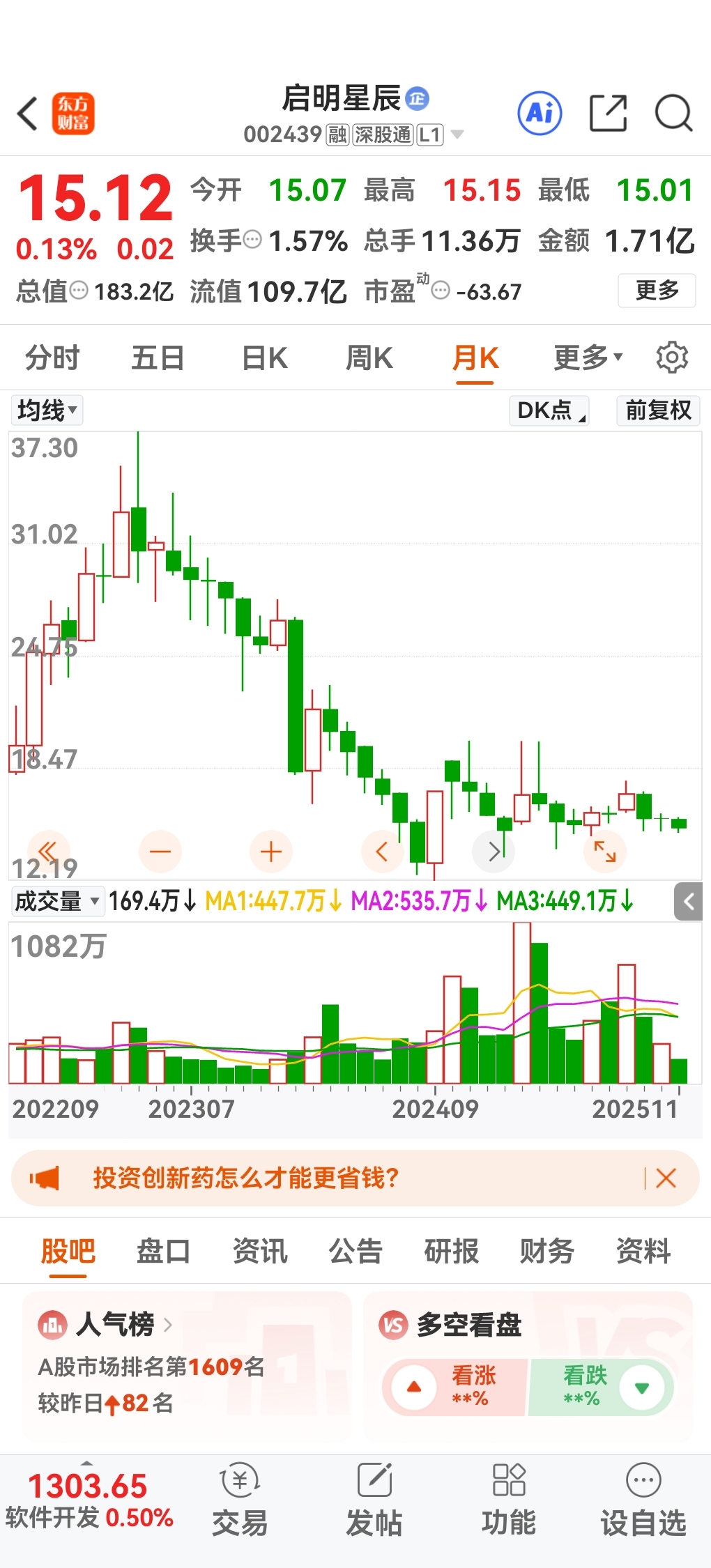 股市这玩意,谁都不能明确知道明天会怎样走,不过15元的启明星辰,看似茅坑里的石头,但是已经具备长线布局的价值了。