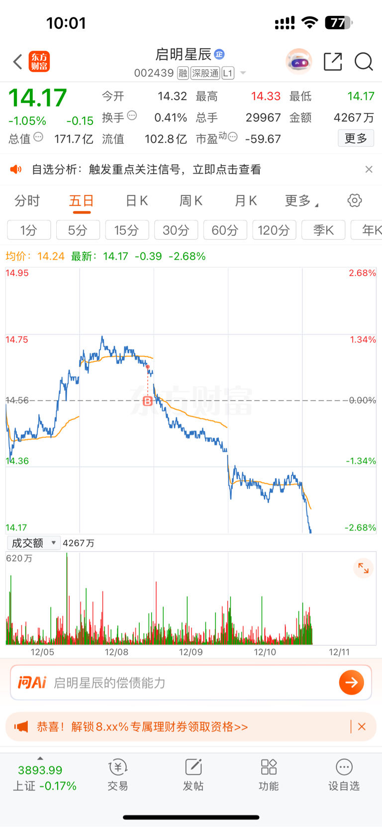 $启明星辰(SZ002439)$ 我一加仓你就来几个暴跌?