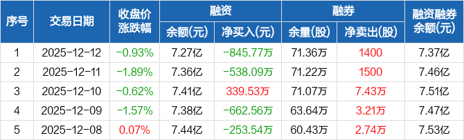 启明星辰:融资净偿还845.77万元,融资余额7.27亿元(12-12)