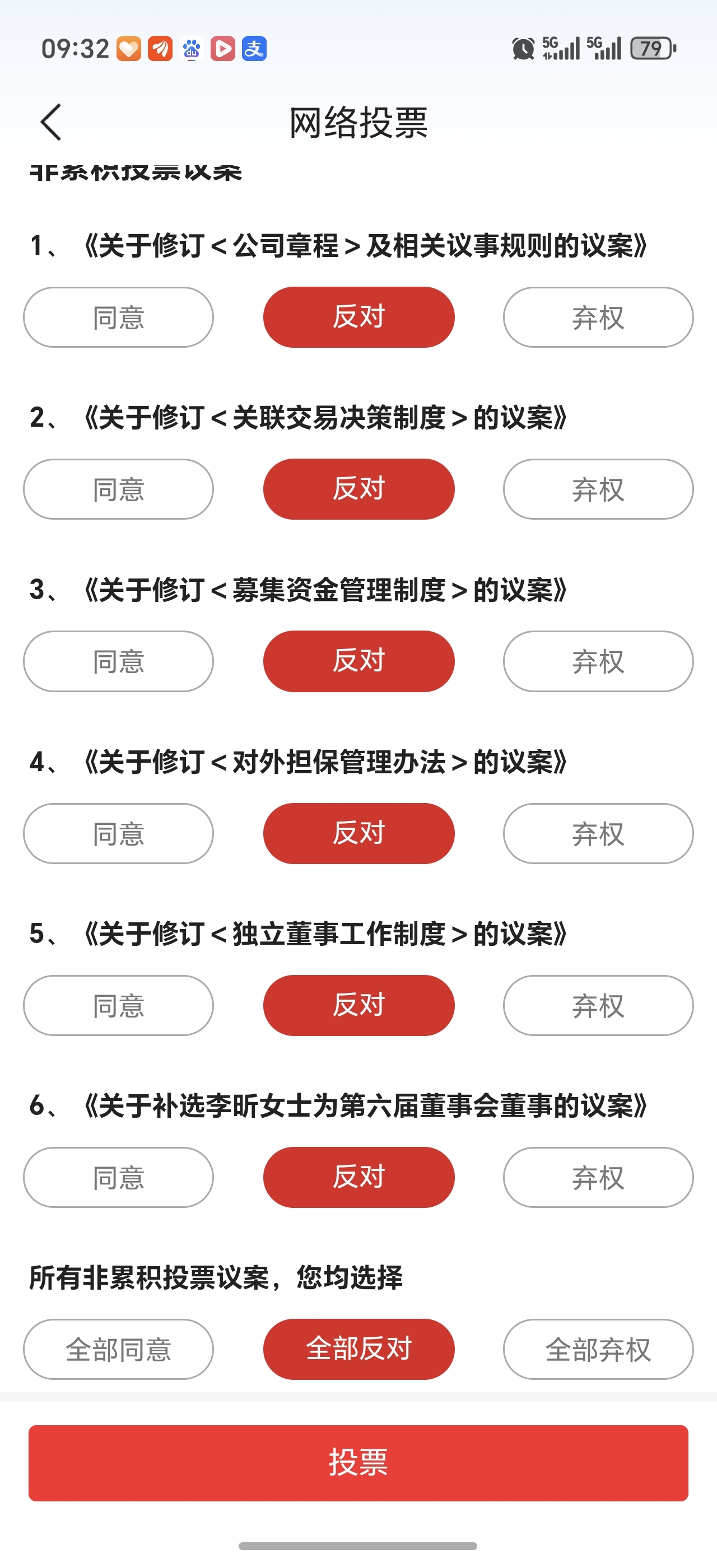 全部反对,虽然我亏钱了,但是投了反对票后,我高兴。