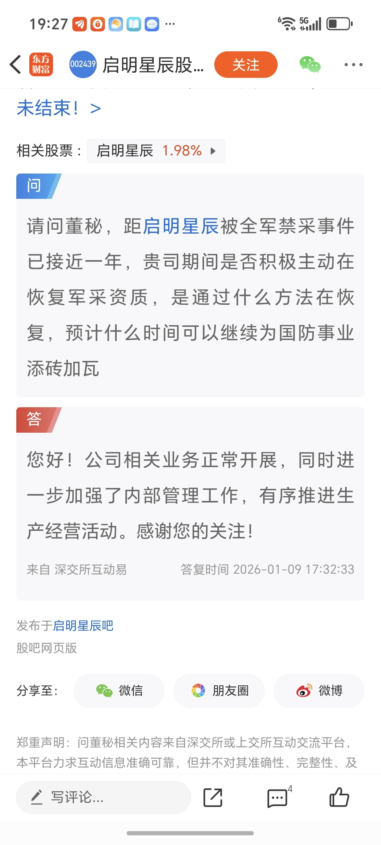 $启明星辰(SZ002439)$ 明明公司的军采业务被停止了而且还没解禁,你这回答就是在混淆概念,敢不敢老老实实回答,而不是在这蒙混过关,嘴里没一句实话,全是