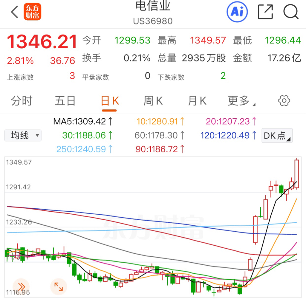 老美的电信业大涨,看看中移动的启明跟不跟。