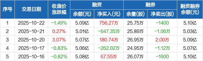 闰土股份:融资净买入756.27万元,融资余额5.09亿元(10-22)
