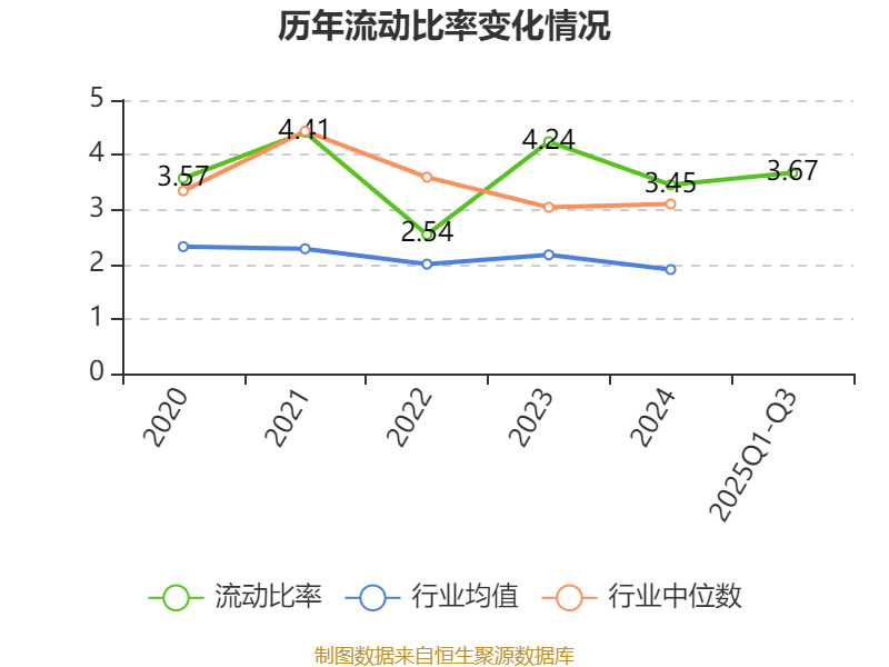 2025年前三季度,公司流动比率为3.67,速动比率为2.8。