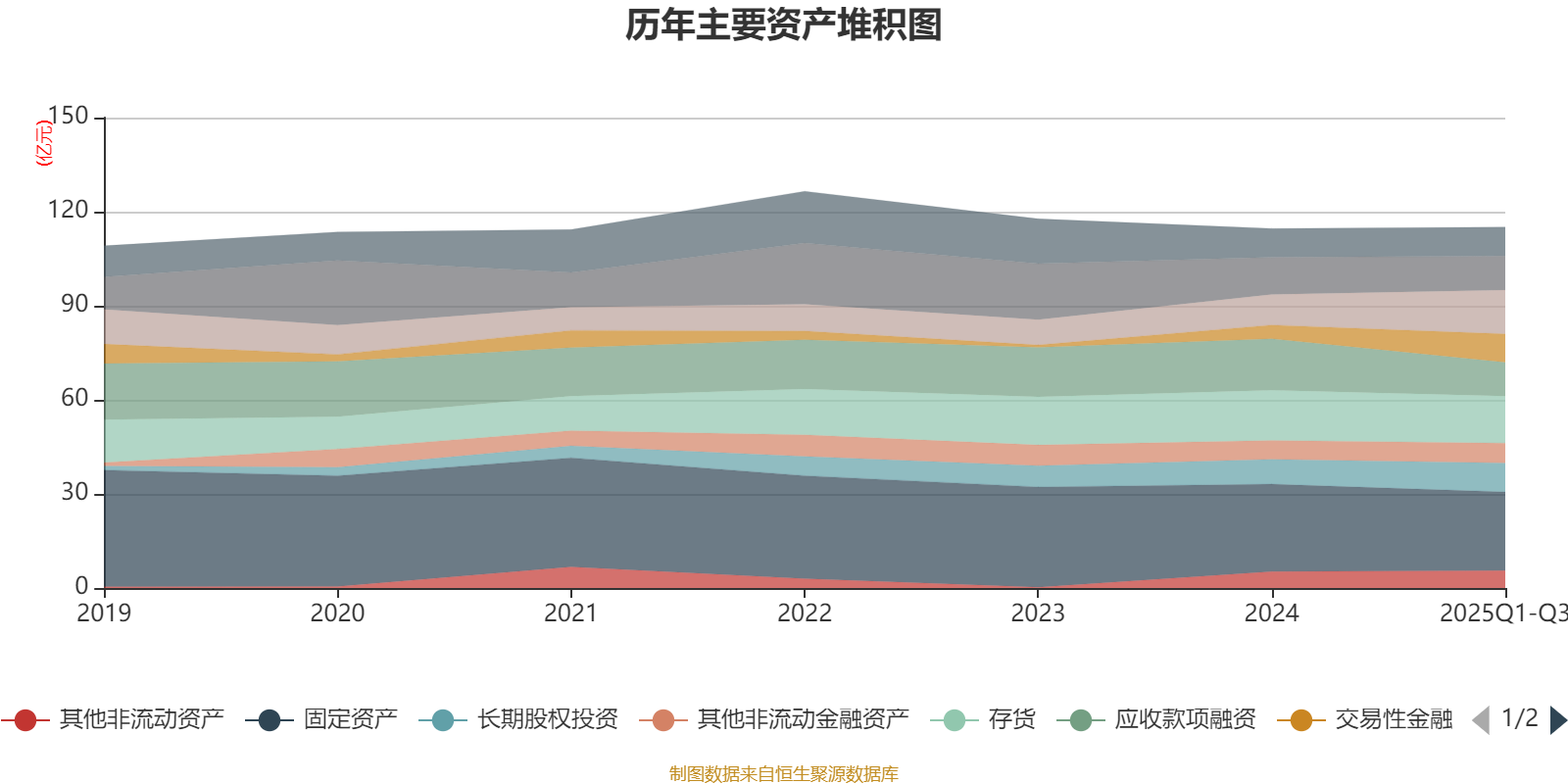 资产重大变化方面,截至2025年三季度末,公司应收款项融资较上年末减少34.67%,占公司总资产比重下降5.01个百分点;交易性金融资产合计较上年末增加105.38%,占公司总资产比重上升4.03个百分点;应收票据及应收账款较上年末增加43.46%,占公司总资产比重上升3.65个百分点;固定资产较上年末减少10.02%,占公司总资产比重下降2.52个百分点。