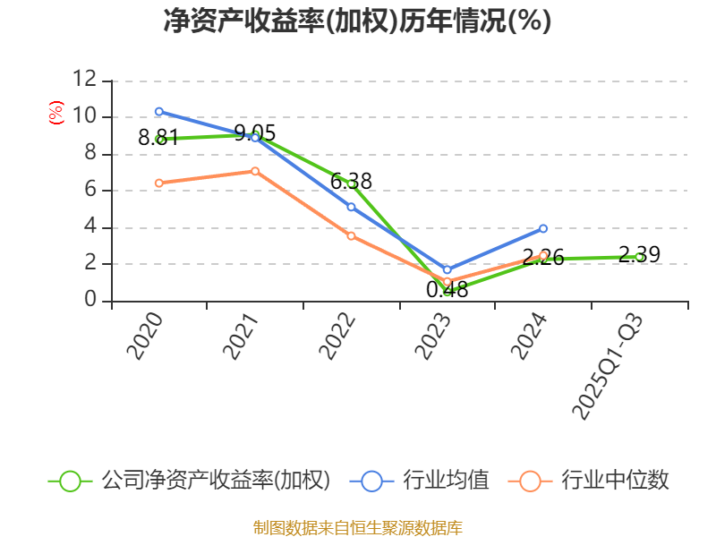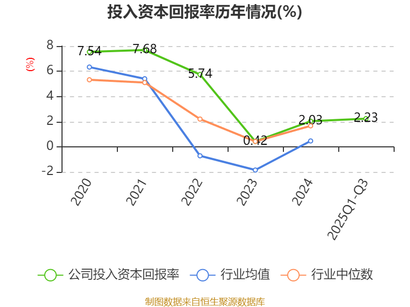 盈利能力方面, 2025年前三季度公司加权平均净资产收益率为2.39%,同比上升0.78个百分点。公司2025年前三季度投入资本回报率为2.23%,较上年同期上升0.79个百分点。