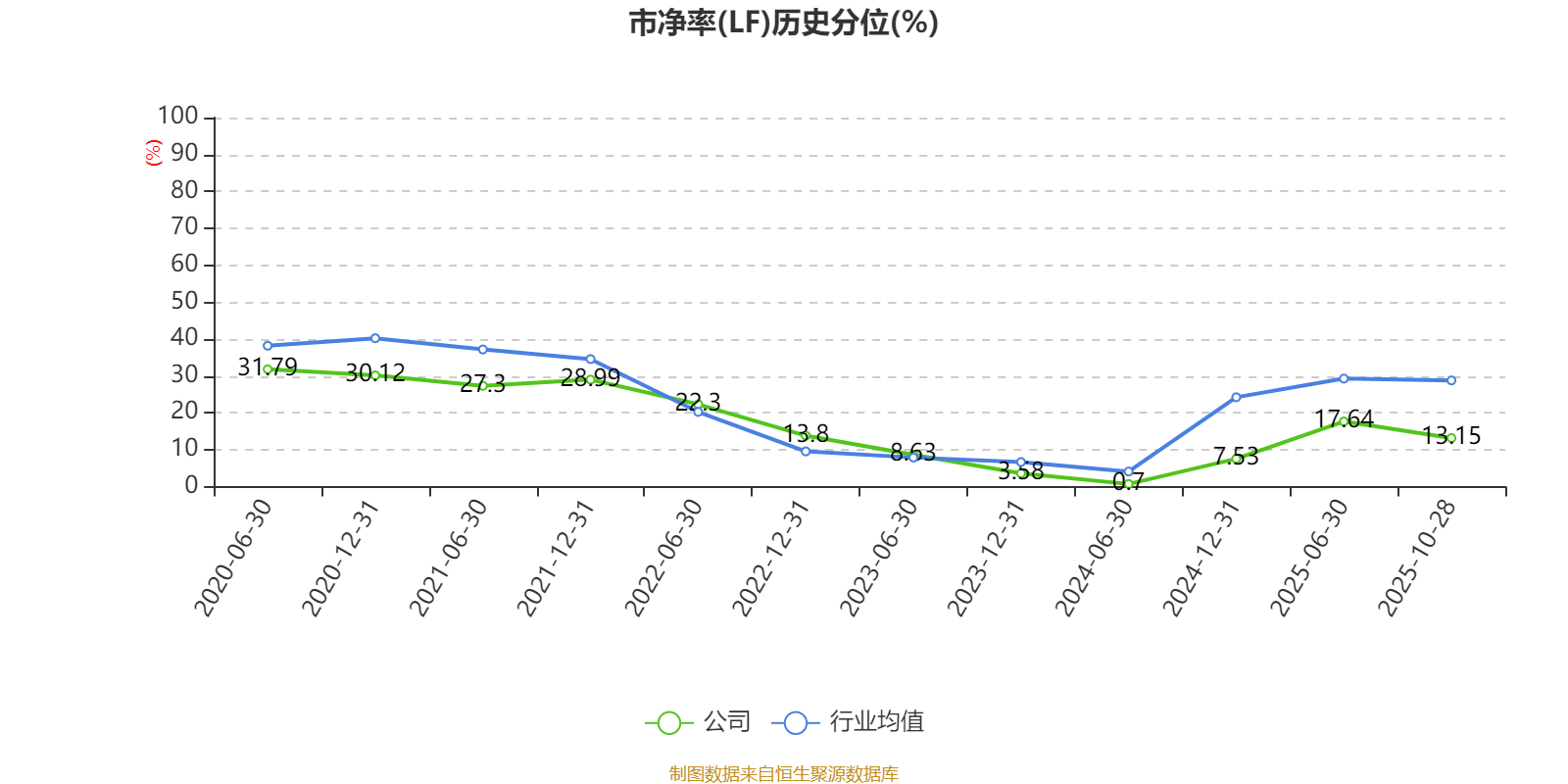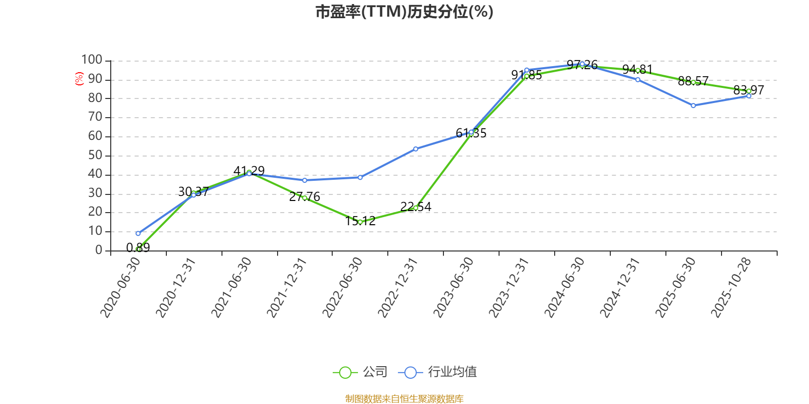市盈率、市净率为负时,不显示当期分位数,会导致折线图中断。