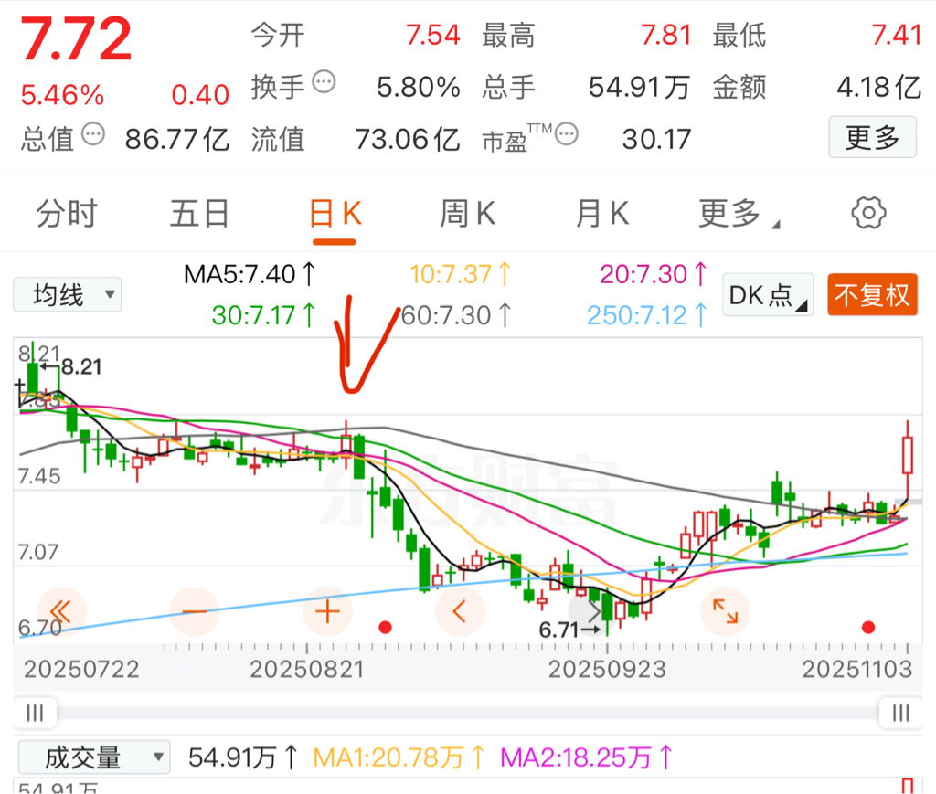 $闰土股份(SZ002440)$ 小爆量了一下,被前面这个高点压制了一下。看后续。