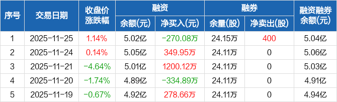 闰土股份:融资净偿还270.08万元,融资余额5.02亿元(11-25)
