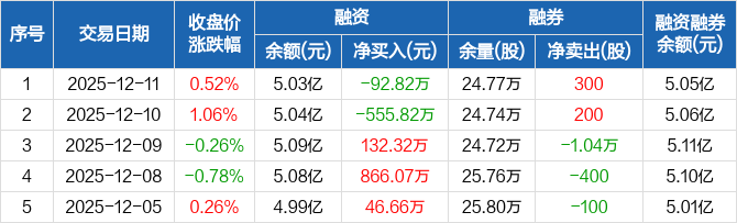 闰土股份:融资净偿还92.82万元,融资余额5.03亿元(12-11)