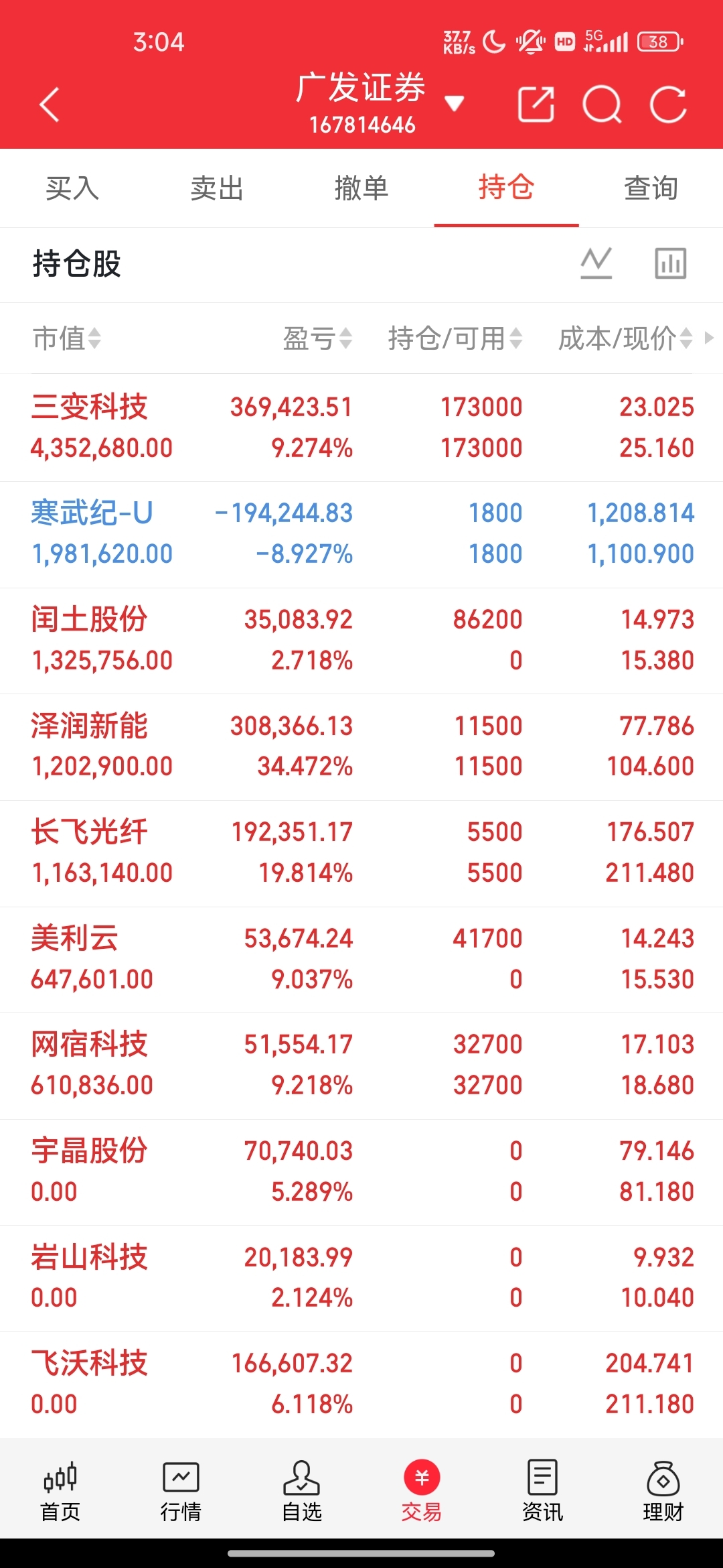 今日收盘持仓