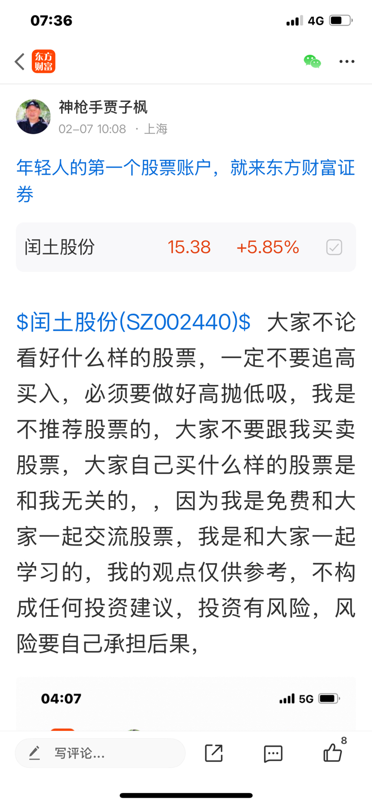 $闰土股份(SZ002440)$ 大家不论看好什么样的股票,一定不要追高买入,必须要做做好高抛低吸,我是不推荐股票的,大家不要跟我买卖股票,大家自己买什么样的股票是和我无关的,因为我是免费和大家一起交流股票,我是和大家一起学习的,我的观点仅供参考,投资有风险,风险要自己承担后果,