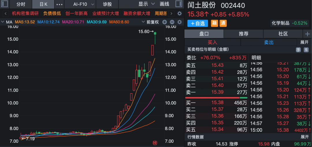 2月10日晚间,闰土股份(002440)发布异动公告表示,公司就股价异动开展全面自查,目前经营情况正常,内外部经营环境未发生重大变化。分散染料是公司的主要产品之一,还原物是分散染料较重要的中间体之一。因受还原物价格上涨因素影响,公司分散染料的市场报价近期几次小幅上调,预计将对公司2026年业绩产生正面影响。但由于分散染料价格波动的可持续性具有不确定性,暂时无法预计对公司业绩的影响程度,敬请投资者理性投资,注意投资风险。