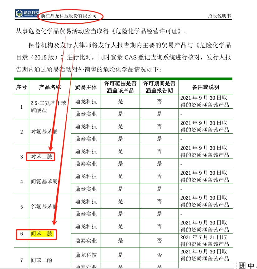 鼎龙科技(招股书&官网)间苯二胺、对苯二胺 销售