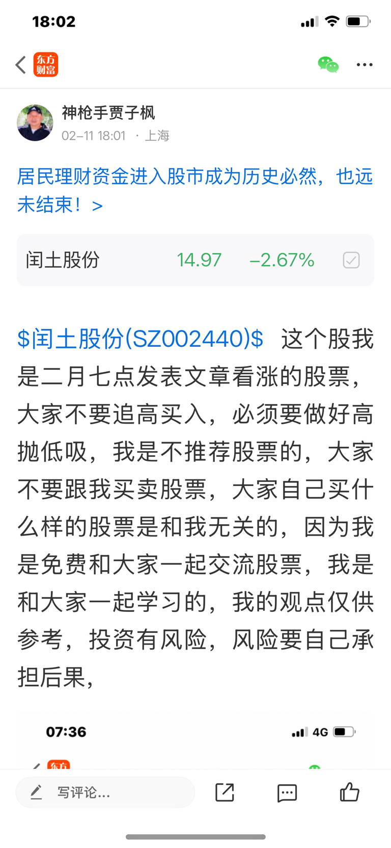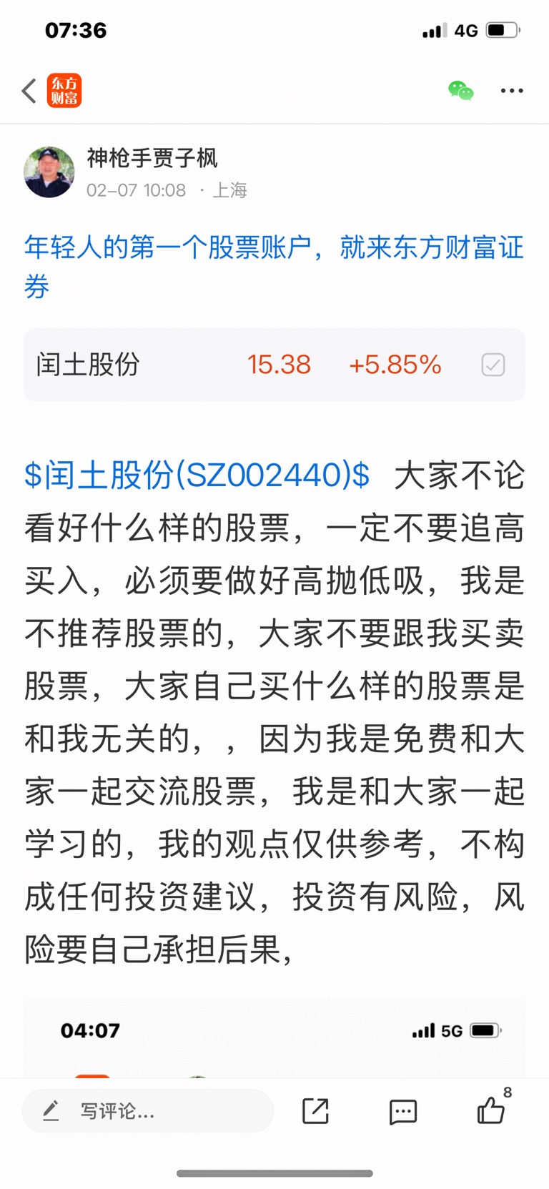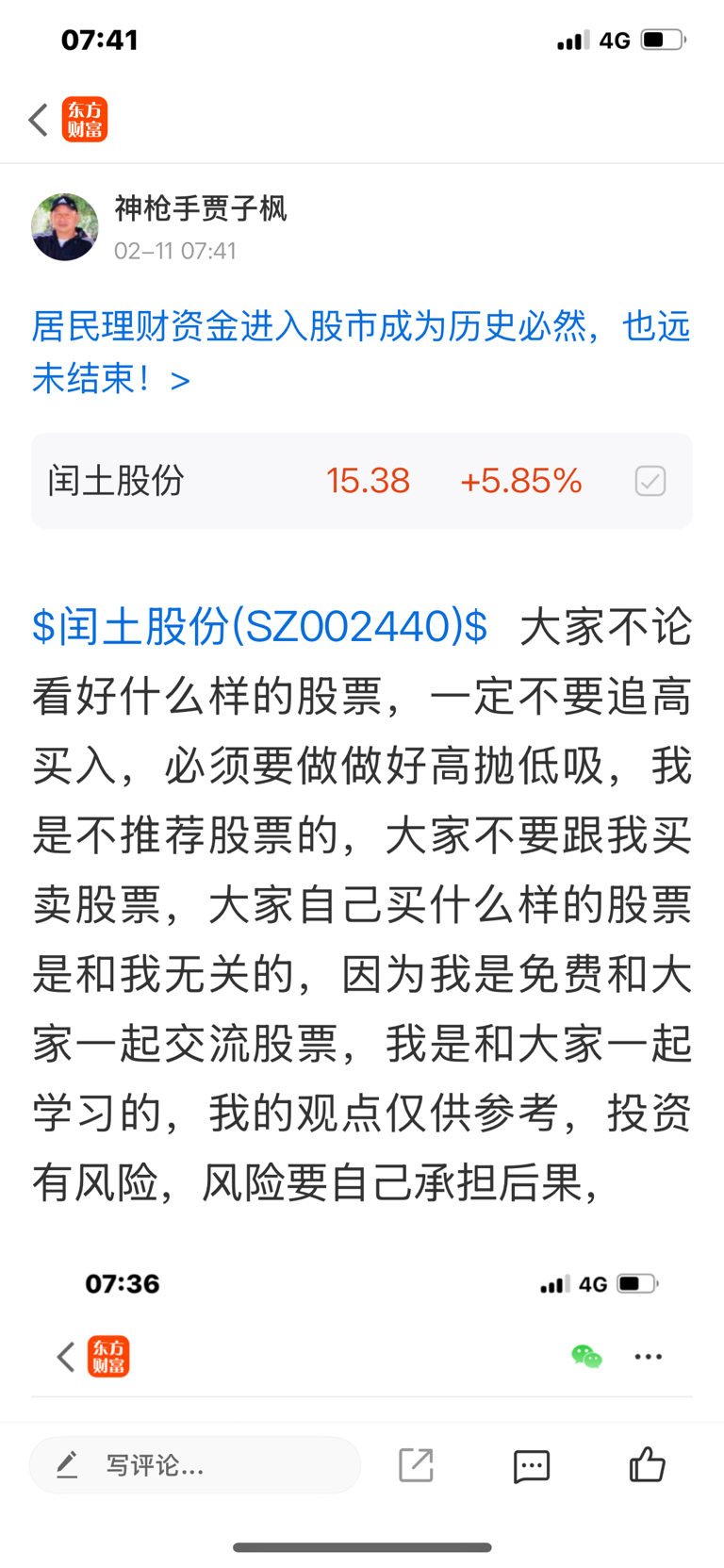$闰土股份(SZ002440)$ 这个股是我二月七号看涨的股票,大家不要追高买入,必须要做好高抛低吸,我是不推荐股票的,大家不要跟我买卖股票,大家自己买什么样的股票是和我无关的,因为我是免费和大家一起交流股票,我是和大家一起学习的,我的观点仅供参考,投资有风险,风险要自己承担后果,