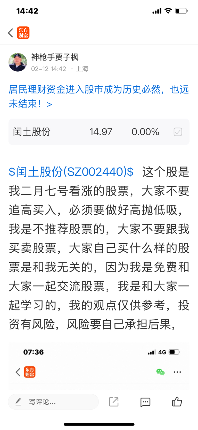 $闰土股份(SZ002440)$ 这个股我是二月七号发表文章看好的股票,大家不要追高买入股票,必须要做好高抛低吸,我是不推荐股票的,大家不要跟我买卖股票,大家自己买什么样的股票是和我无关的,因为我是免费和大家一起交流股票,我是和大家一起学习的,我的观点仅供参考,投资有风险,风险要自己承担后果,