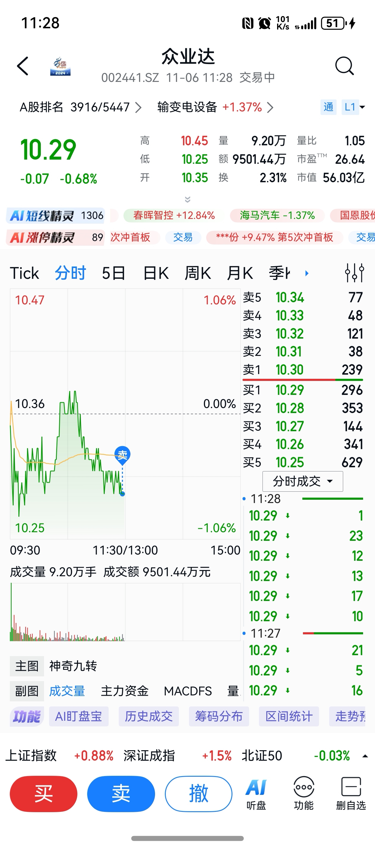$众业达(SZ002441)$ 一日游,再见