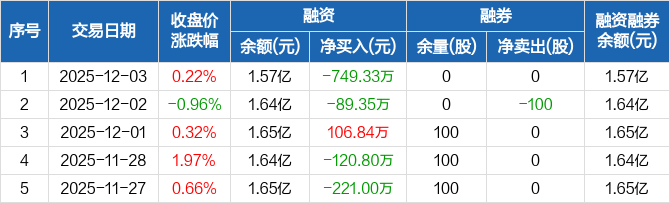 众业达:融资净偿还749.33万元,融资余额1.57亿元(12-03)