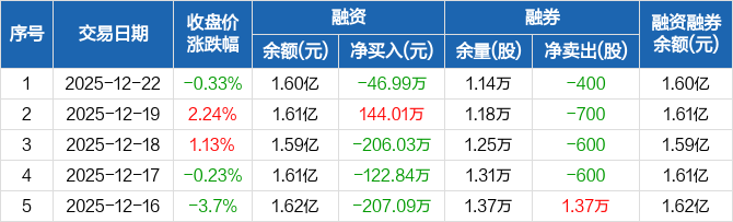 众业达:融资净偿还46.99万元,融资余额1.6亿元(12-22)