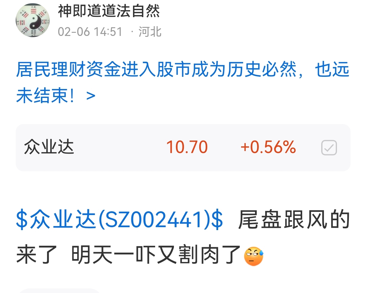 温馨提示: 1.根据《证券法》规定,禁止编造、传播虚假信息或者误导性信息,扰乱证券市场;2.用户在本社区发表的所有资料、言论等仅代表个人观点,与本网站立场无关,不对您构成任何投资建议。用户应基于自己的独立判断,自行决定证券投资并承担相应风险。《东方财富社区管理规定》