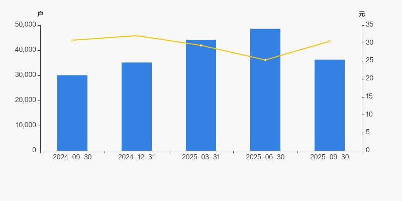 2024年9月30日至今,公司股东户数显著增长,区间涨幅为20.71%。2024年9月30日至2025年9月30日区间股价下降0.94%。